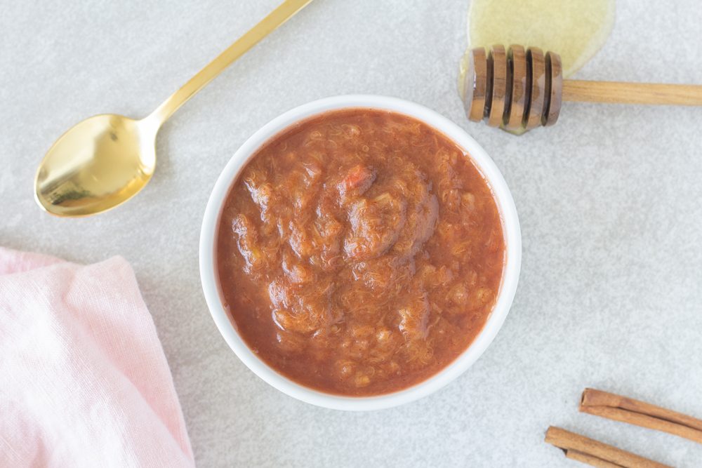 - 1/2 cup rhubarb, sliced (approx. 1/2 large stalk rhubarb)