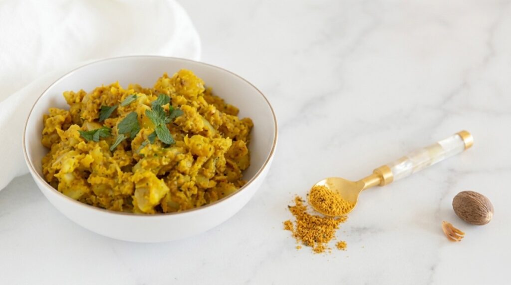 Can’t eat nightshades anymore but you are craving aloo gobi? Look no further. This dish is full of flavor featuring sweet potatoes and cauliflower.