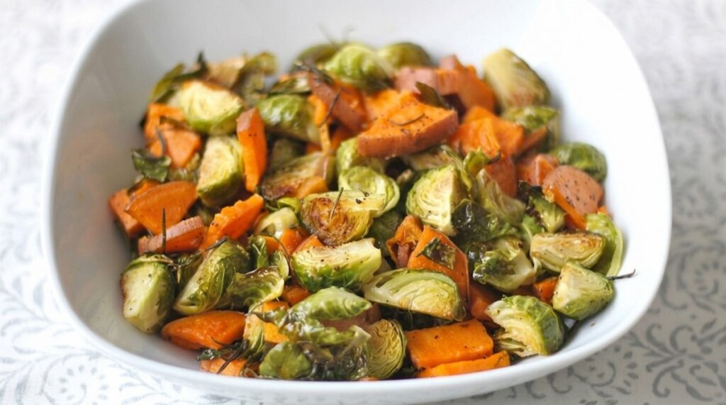 Roasted Sweet Potatoes and Brussels Sprouts